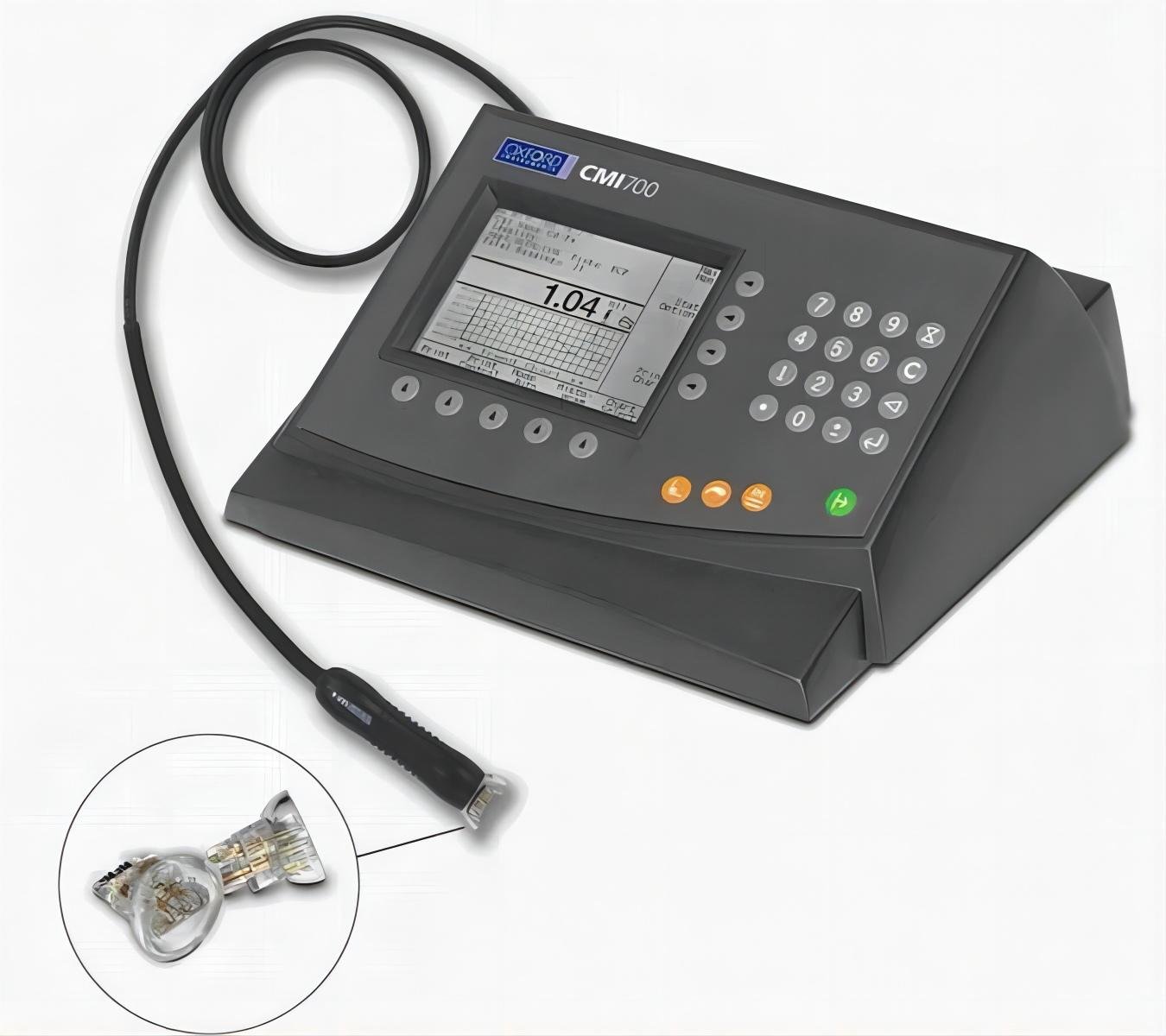 Hitachi CMI700 SRP-4 Probe is a four-point micro-resistance probe used with the Hitachi/Oxford CMI series coating thickness gauges for high-precision, non-destructive measurement of surface copper thickness on PCBs.